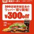 バーガーキング、祝・300店舗突破!300円引きになる「ワッパー祭り」実施